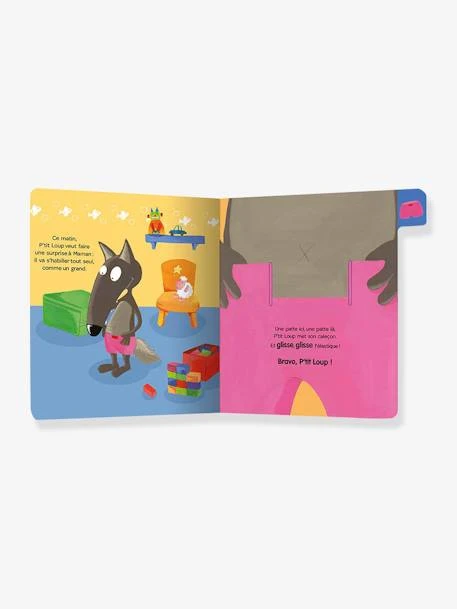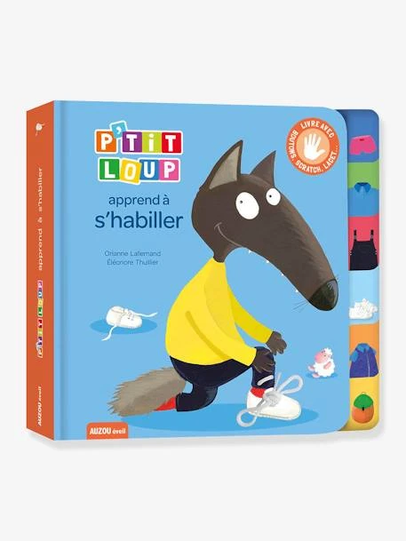 P’tit Loup apprend à s’habiller. D’abord, le caleçon, puis le polo, les baskets… sans oublier la doudoune !Un album tout carton avec un mécanisme à chaque page pour apprendre à maîtriser toutes les étapes de l’habillement : de la fermeture éclair aux lacets.